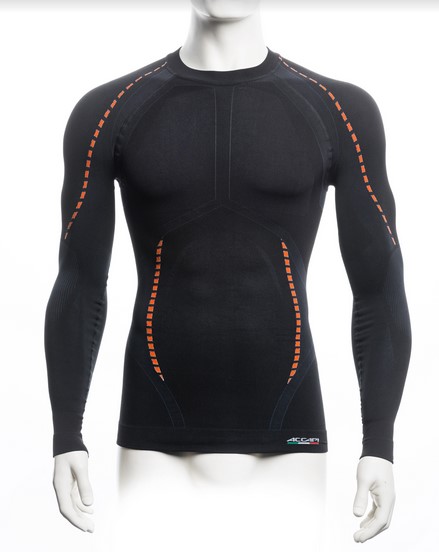 Максимально влагоотводящее мужское зонированное термобелье для высоких нагрузок, итальянского производства, разработано специально для занятий аэробными видами спорта с сильной циклической составляющей, например, бегом или кросс-кантри (беговыми лыжами).