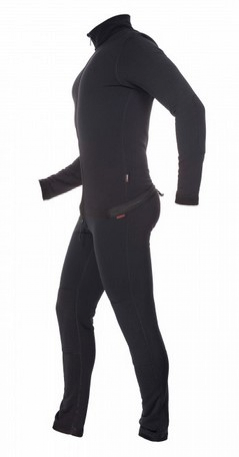 Утепляющий эластичный комбинезон из Polartec® Power Stretch® Pro – бикомпонентного материала, который гораздо слабее классической его версии продувается ветром, отлично сохраняет тепло и отводит от тела влаги почти на 30% больше, по сравнению с однокомпонентными материалами. Разъемная застежка-молния YKK с двумя бегунками и ветрозащитной планкой позволяет расстегнуть ее как сверху, так и снизу. Особенностью конструкции является дополнительная санитарно-гигиеническая молния сзади, что удобно при длительном ношении комбинезона. Воротниковая зона отделана дополнительно материалом Polartec® Power Stretch®. В его производстве использована сверхпрочная эластичная нить COATS, что увеличивает надежность изделия и позволяет плоским швам сохранять эластичность.
