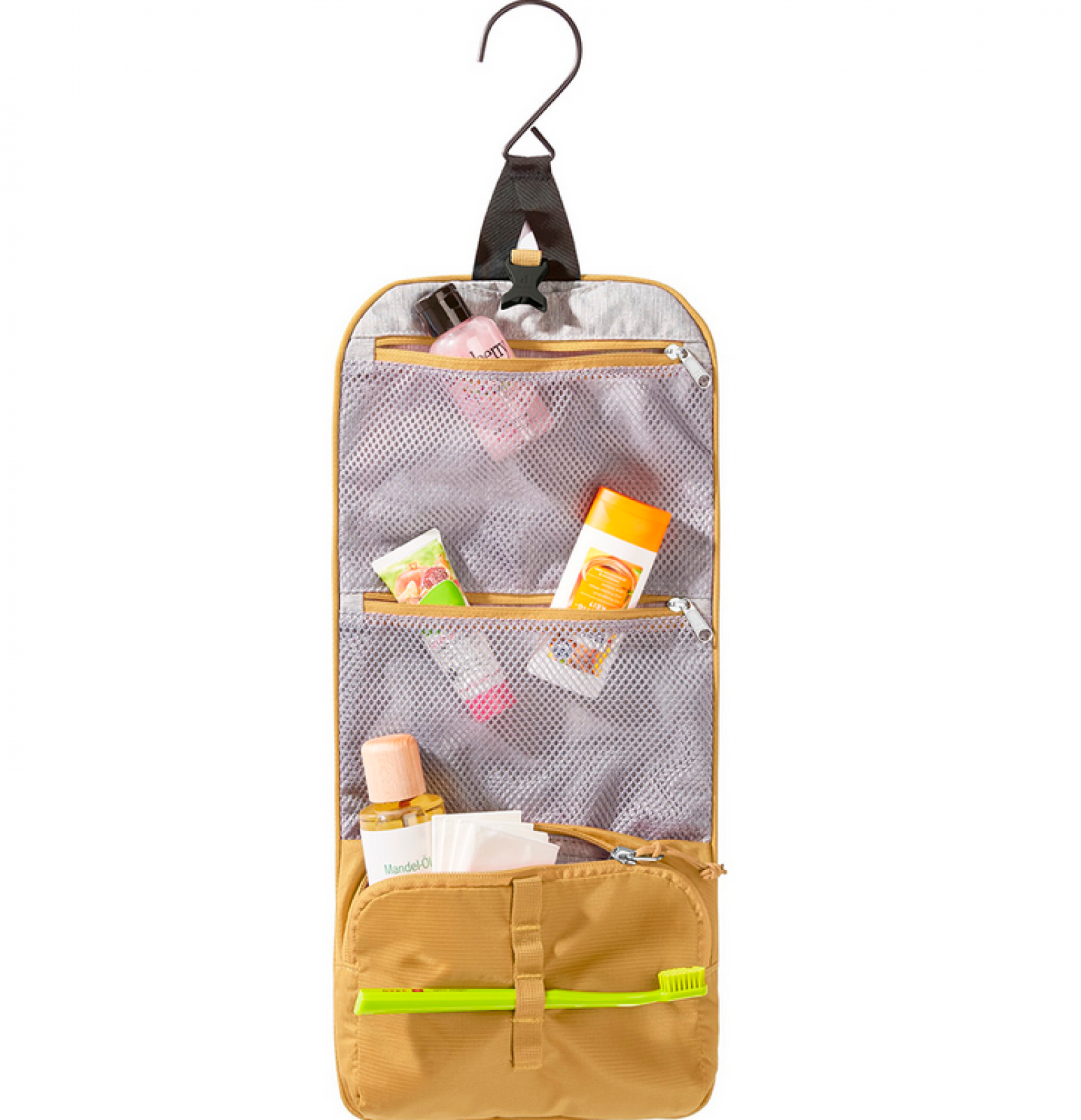 Несессер для умывальных принадлежностей, в сложенном виде застегивается фастексом. Имеет крючки для подвешивания в открытом виде.