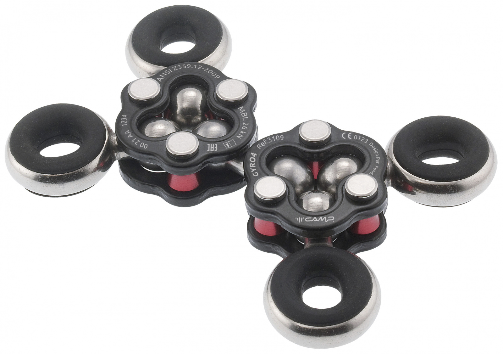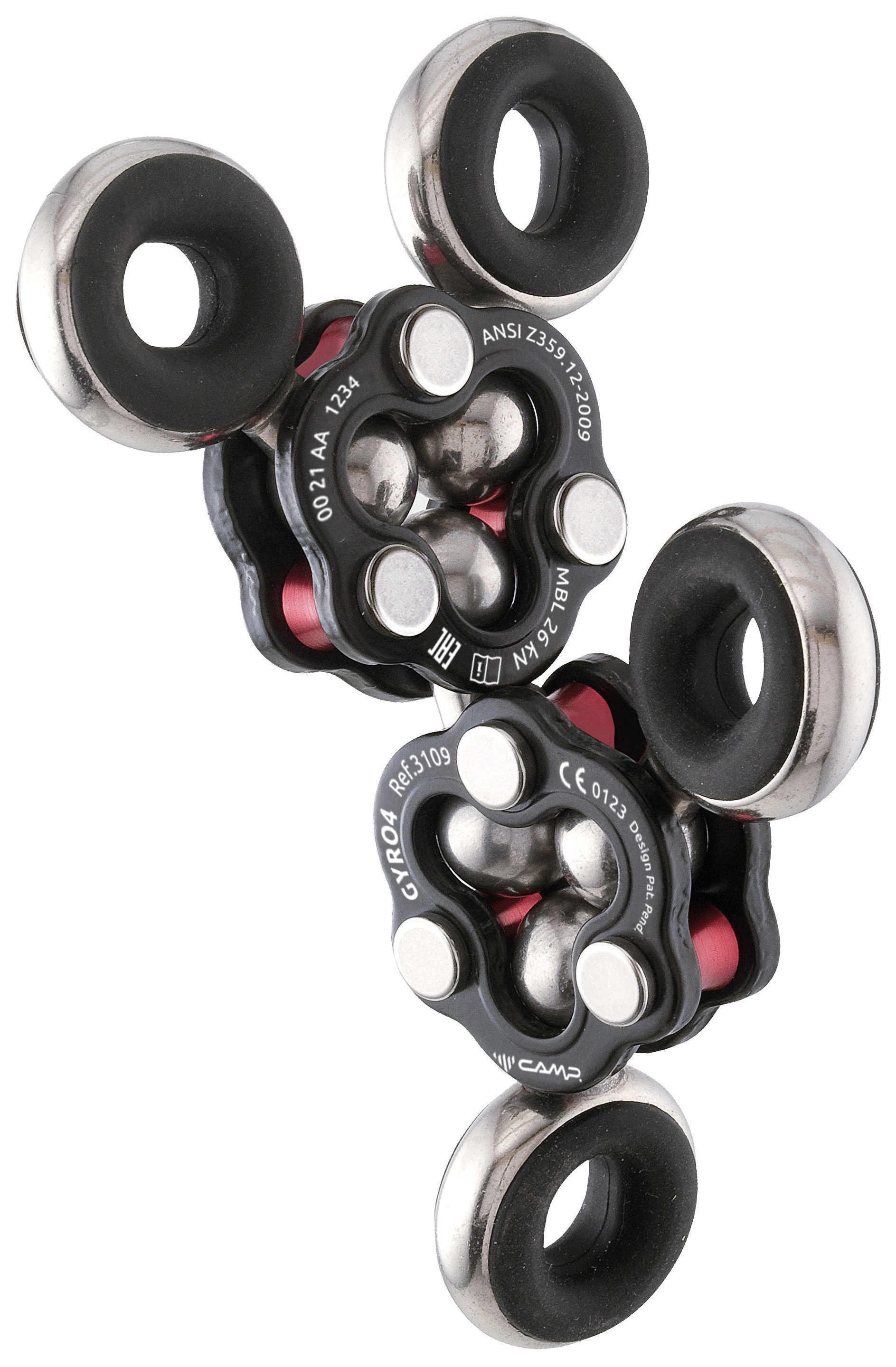 Gyro4 — это компактная и универсальная такелажная пластина с подвижными точками, вращается во всех трёх измерениях, что открывает бесчисленные возможности для соединения различных элементов, которым требуется свобода движения. Идеальный вариант для организации полиспастов, позиционирования спусковых устройвств и организации сложных навескок для спасательных работ.