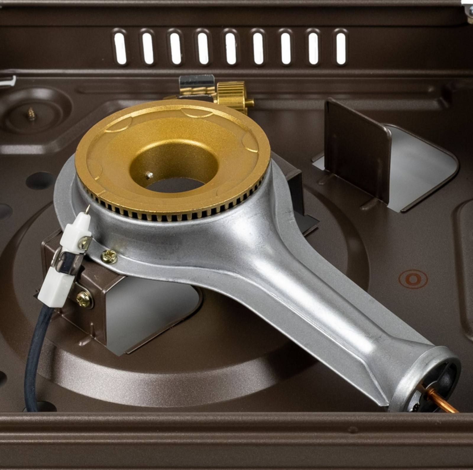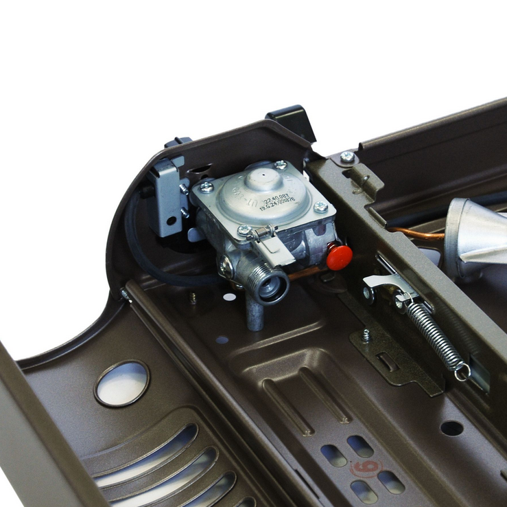 Пьезоподжиг, регулировка пламени, простая установка картриджа, внутренний редуктор имеет предохранитель, отключающий подачу газа при проблемах с давлением его.