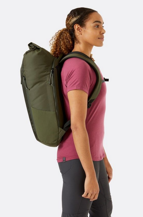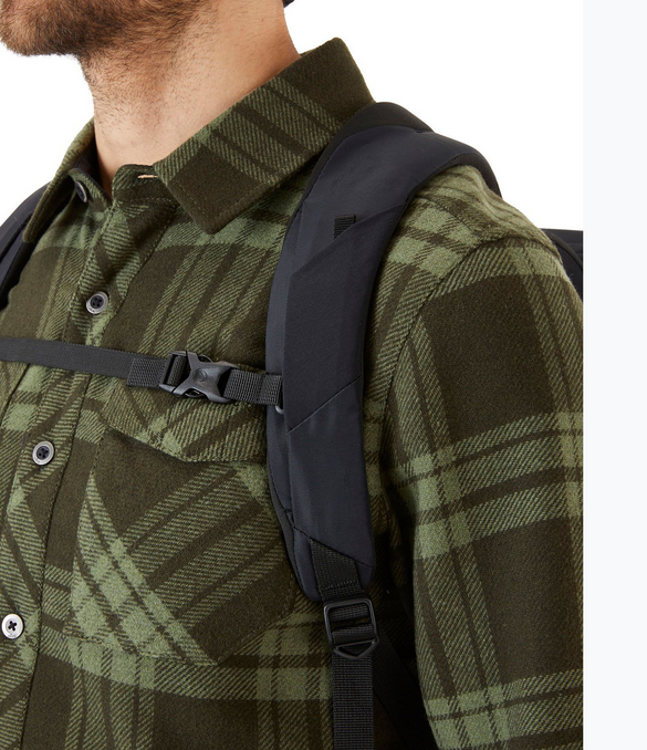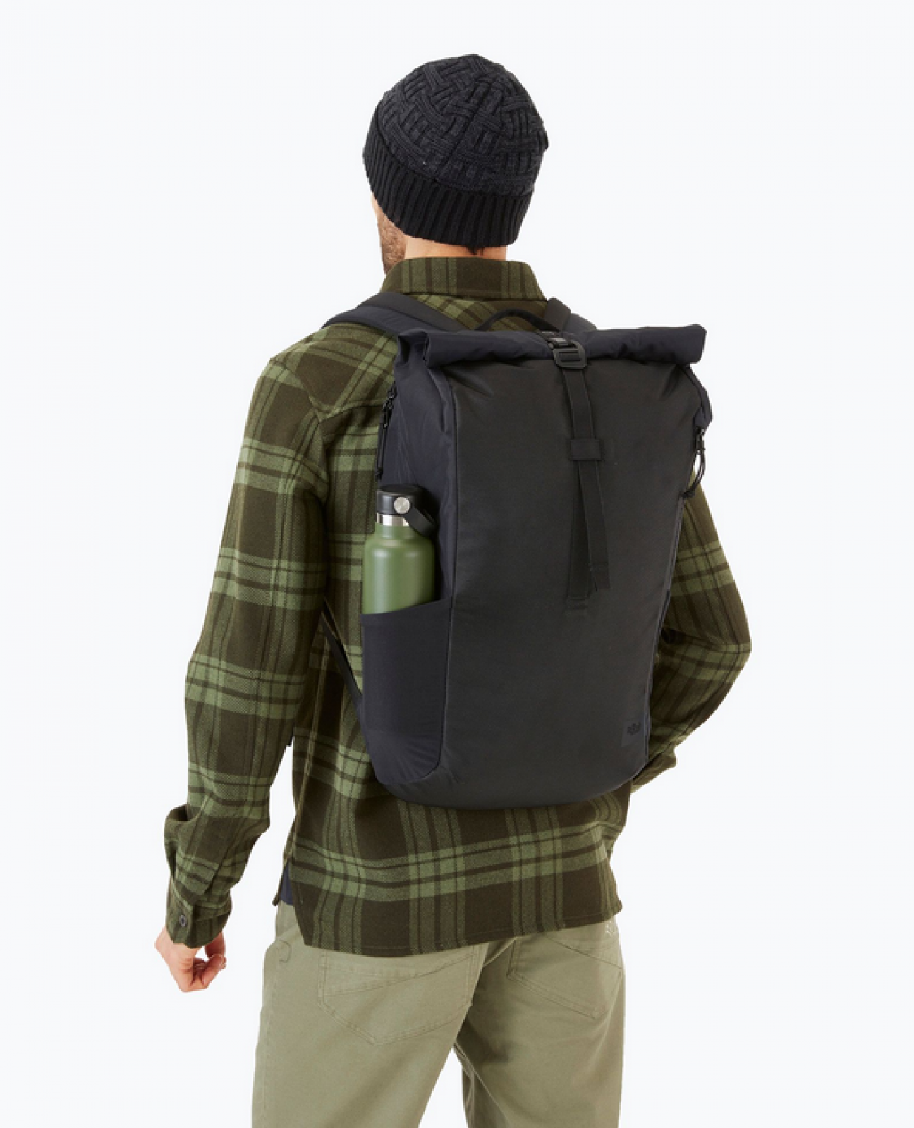 Что у него снаружи, или, правильнее сказать, на поверхности: лаконичный и стильный дизайн, основное отделение roll-top с металлической пряжкой, внешний доступ к отделению для электроники, боковые карманы для бутылки с водой или других мелочей, лямки с грудной стяжкой и вставками из мягкой ткани в районе шеи, чтобы избежать натирания, плотная и эргономичная спинка из формованной пены. На фронтальной панели — вертикальная молния, ведущая в объёмный передний карман.