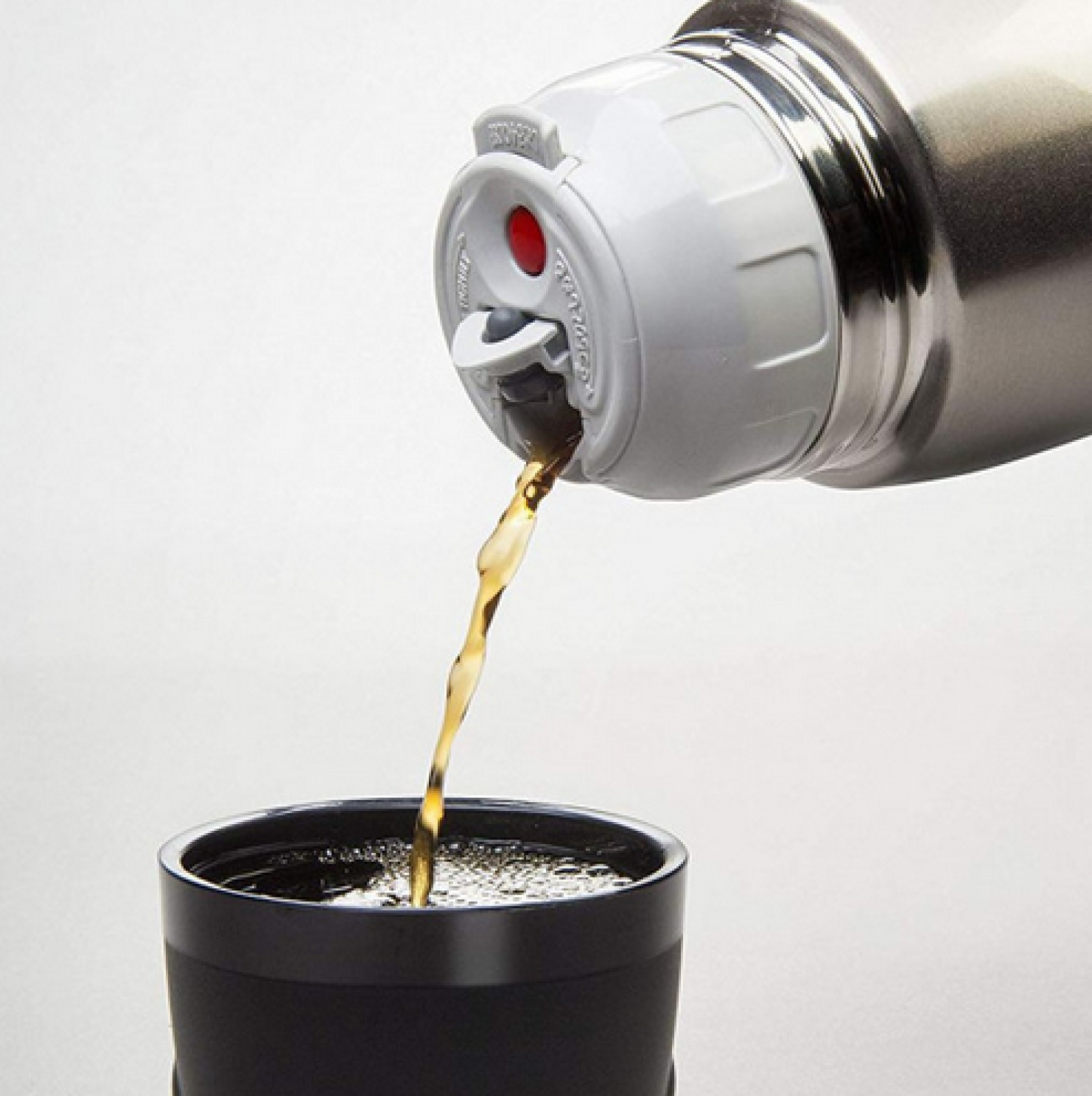 Термос японского производства с металлической колбой емкостью 0,82 л. Нержавеющая сталь SUS304 имеет внутри колбы специальное покрытие, исключающее контакт жидкости с металлом, легкое открытие пробки в одно нажатие без необходимости отвинчивания ее. Автоматическое закрытие пробки при надевании крышки. Крышка легко моется и практически не нуждается в обслуживании.