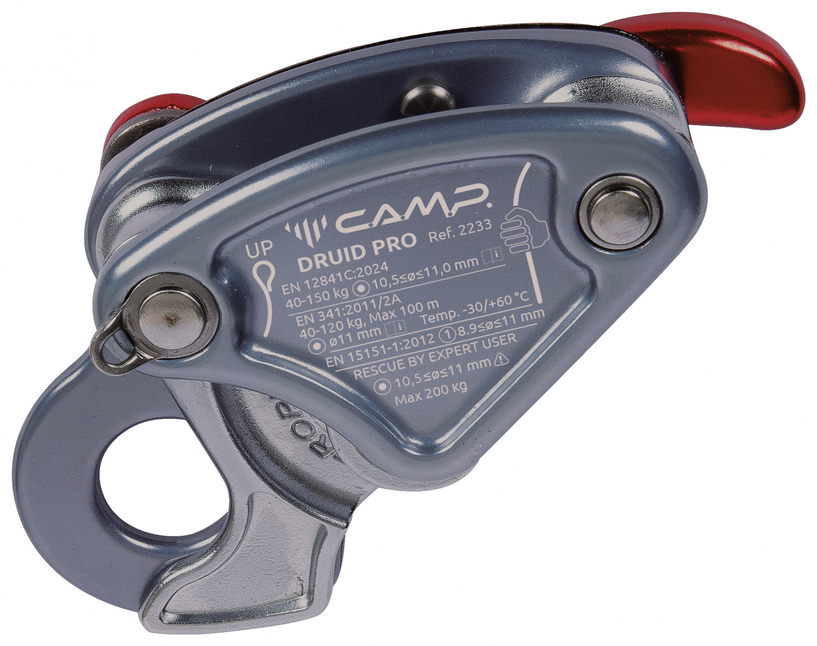 Druid Pro от CAMP — это лёгкое, компактное спусковое устройство-автоблокант для веревочного доступа, спасательных работ и промышленного альпинизма, специально разработанное для полустатических верёвок диаметром 10–11 мм.