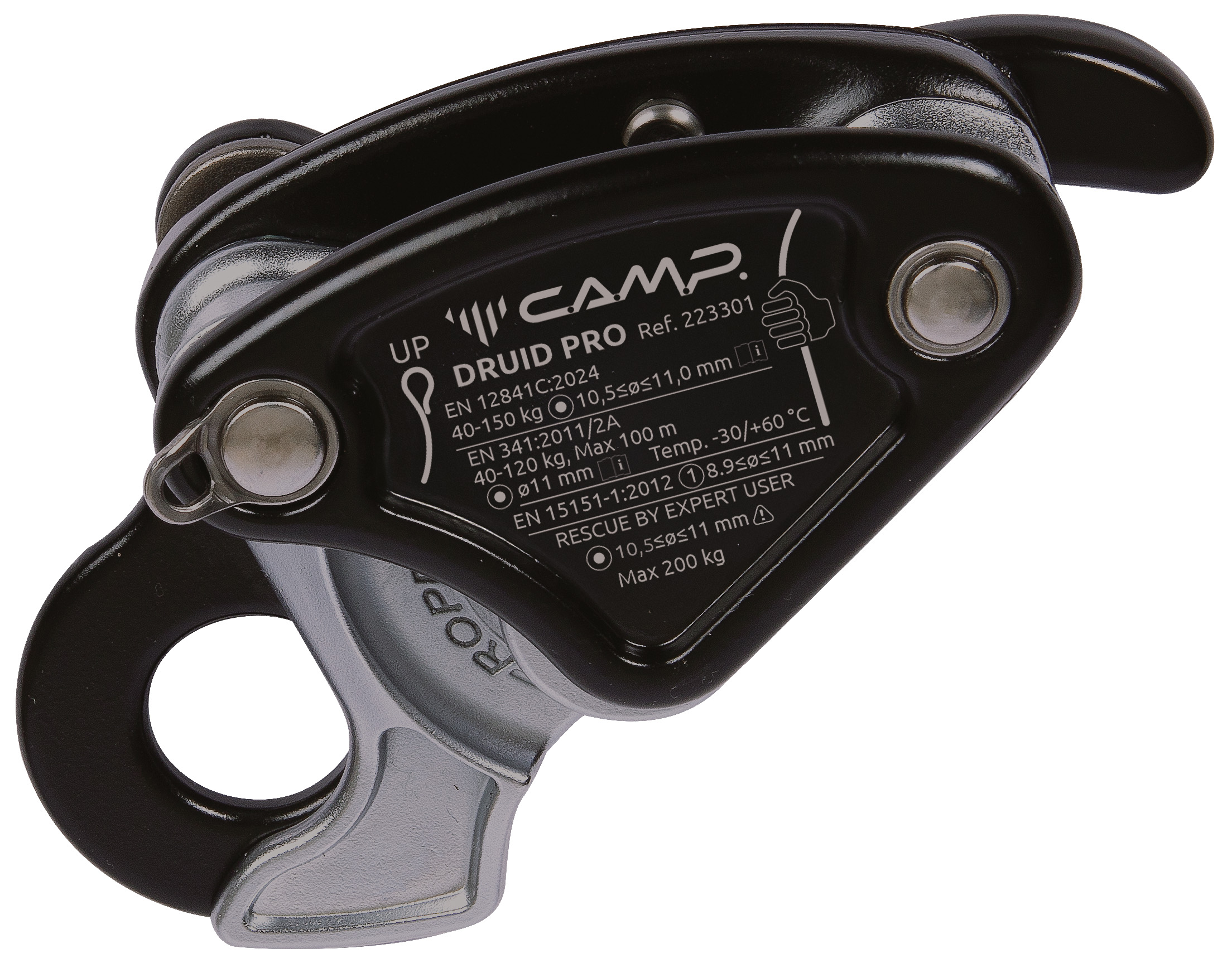 Druid Pro от CAMP — это лёгкое, компактное спусковое устройство-автоблокант для веревочного доступа, спасательных работ и промышленного альпинизма, специально разработанное для полустатических верёвок диаметром 10–11 мм.