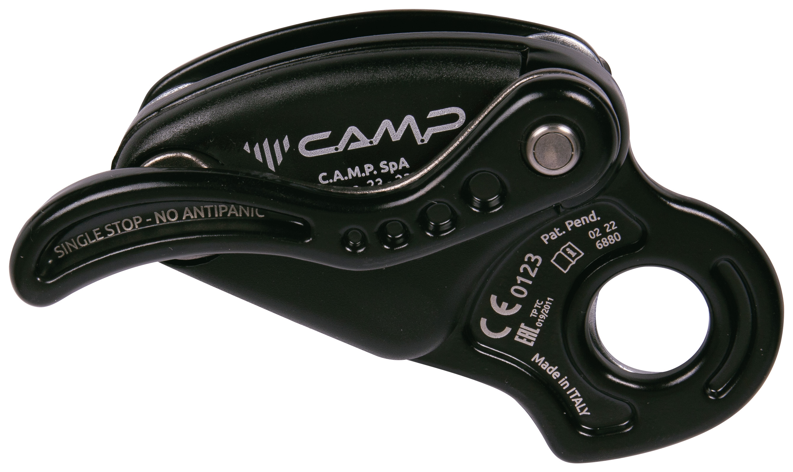 Инновационный внутренний механизм и кулачок обеспечивают плавный спуск, минимизируют быстрый износ, поглощают энергию мелких рывков за счёт небольшого контролируемого проскальзывания верёвки.